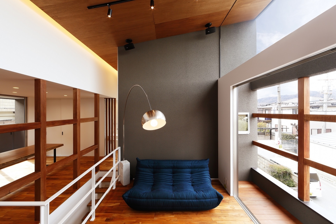 ハーゲンダッツCMの世界観がお似合いの奥様。その雰囲気をカタチにした気品溢れる大人スタイルの家。道行く人を魅惑する外観のその佇まいはクールさと女性の優しさの二面性を持ち合わせている。2階のリビングテラスからの眺望は箕面山。四季の情緒を楽しめるライフスタイルがそこにはある。