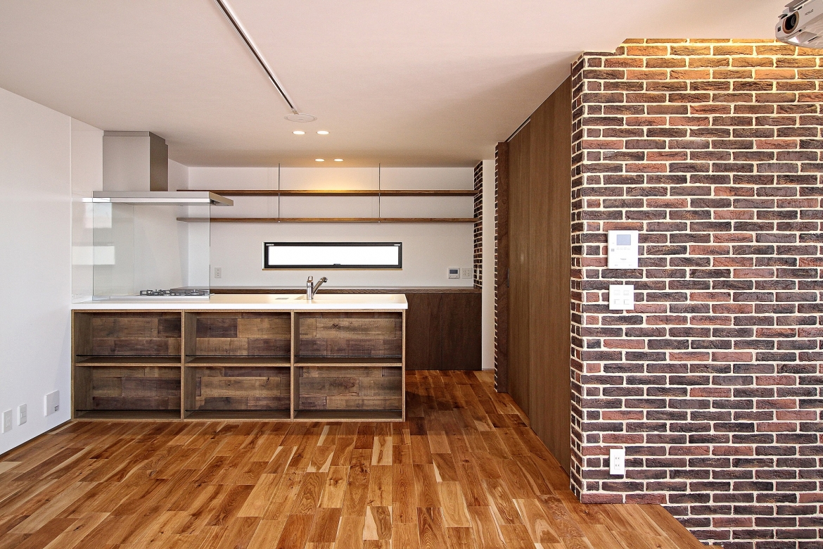 室内の多方向より見えるコアとなる動線部分にラフなレンガタイルを採用しBushwickという地域に残る昔ながらのブルックリンの無骨さを表現した。エッジの効いたシンプルな外観と個性的なインテリアスタイルが程よく調和され時代に左右されることのないフラットな空間を創造した